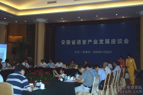 CTI論壇(ctiforum)07月29日消息: 2009年7月28日,北京釣魚(yú)臺(tái)大酒店嘉賓云集。國(guó)家有關(guān)部委領(lǐng)導(dǎo)、語(yǔ)音產(chǎn)業(yè)界和學(xué)術(shù)界的專家、安徽省有關(guān)部門(mén)同志,媒體界朋友,以及中國(guó)語(yǔ)音產(chǎn)業(yè)龍頭企業(yè)——安徽科大訊飛信息科技股份有限公司領(lǐng)導(dǎo)團(tuán)隊(duì)成員匯聚一堂,共同探討語(yǔ)音產(chǎn)業(yè)發(fā)展大計(jì)。為如何加快形成以科大訊飛為核心的產(chǎn)業(yè)集群,進(jìn)一步壯大語(yǔ)音產(chǎn)業(yè)獻(xiàn)計(jì)獻(xiàn)策。此次盛會(huì)的召開(kāi)標(biāo)志著安徽省打造全國(guó)乃至全球語(yǔ)音產(chǎn)業(yè)基地工作的正式啟動(dòng)。