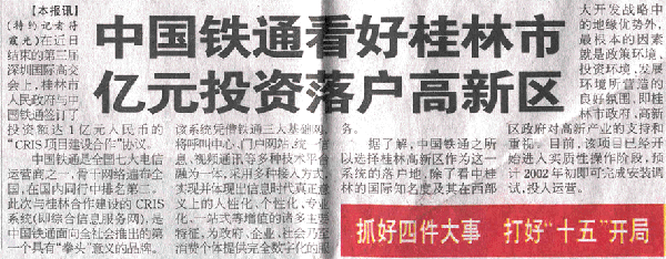 中國鐵通億元投資落戶桂林
