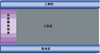 軟電話提供標(biāo)準(zhǔn)的呼叫控制功能,如座席的登錄、注銷等。業(yè)務(wù)模塊信息根據(jù)該座席的技能設(shè)置顯示該座席能夠使用的座席業(yè)務(wù)模塊,工作區(qū)是座席使用業(yè)務(wù)模塊的區(qū)域,業(yè)務(wù)模塊的調(diào)入可以是系統(tǒng)根據(jù)自動(dòng)服務(wù)傳遞的參數(shù)自動(dòng)彈出,也可以是座席人員手工選擇相應(yīng)的業(yè)務(wù)操作。同時(shí),業(yè)務(wù)模塊通過標(biāo)準(zhǔn)的接口和軟電話模塊進(jìn)行通信,取得或者設(shè)置系統(tǒng)的呼叫參數(shù)或操作,包括提取系統(tǒng)主被叫號(hào)碼、用戶按鍵等。通過工具欄提供系統(tǒng)的菜單、快捷鍵、快捷按鈕的使用。通過這種方式,系統(tǒng)可以隨時(shí)增加、修改座席的業(yè)務(wù)模塊,而無(wú)須修改整個(gè)座席端,有利于系統(tǒng)業(yè)務(wù)的分步實(shí)施,大大縮短了系統(tǒng)的整個(gè)建設(shè)周期。