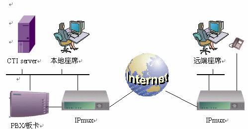針對目前呼叫中心部署過程中對于IP遠程座席的需求,北京佳訊飛鴻電氣有限責任公司推出了系列IPmux設備。 用戶只需將原有座席的電話線插到IPmux設備上,通過互聯(lián)網,即可將該座席延伸到全球任意地點。