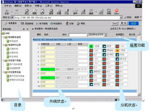 坐席輸入正確的工號(hào)、密碼后,登錄AllyTalk統(tǒng)一消息平臺(tái),電話(huà)服務(wù)具有如下功能:
