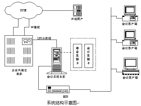 一般傳統(tǒng)電話會議的實現(xiàn)均利用企業(yè)內(nèi)部交換機(jī)(PBX)的多方通話功能(三方、四方或更多方),但有很大的局限性(如參加會議的人數(shù)有限,一般交換機(jī)不能超過8方,異地外線參加會議不方便、信號音相互干擾、模擬外線掛機(jī)不準(zhǔn)確,長期占用外線、操作煩瑣等),使用戶在使用過程中遇到很多不方便。目前還有一種遠(yuǎn)程會議系統(tǒng)是專用的可視電話會議系統(tǒng),這種系統(tǒng)可以將圖像與聲音同時傳送,使用戶有親臨會場的感覺,但是它要有專用的會議中心、專用的會議終端設(shè)備以及專用的信息傳輸線路,系統(tǒng)造價和使用費(fèi)用均相當(dāng)高,一般用戶難以承受。