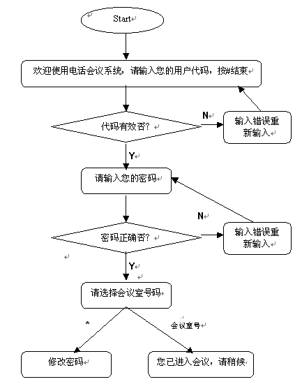 說明:用戶代碼、密碼等電話會議資料管理員可以通過客戶端管理系統(tǒng)來建立。該語音流程也可以通過Smatele語音流程生成器來改寫,方法為在Server端執(zhí)行程序的當(dāng)前路徑下編寫一個名為User.dat的語音流程腳本文件即可,具體方法可以參閱《SmarTele流程生成器說明》和user_con.dat說明;