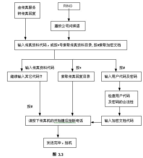 3 按1之后,轉(zhuǎn)發(fā)送傳真,詳細(xì)流程參見(jiàn)《3.2傳真接收》。
