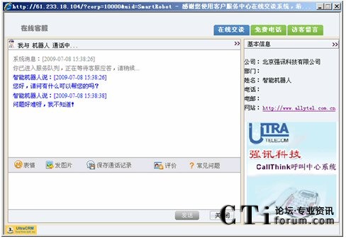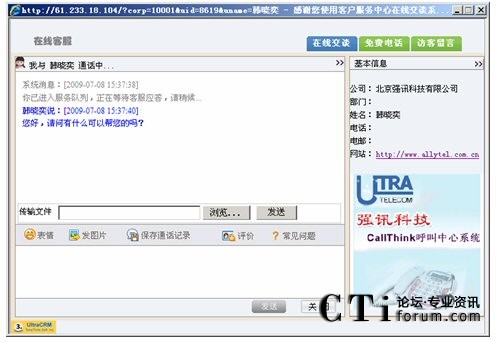 訪客可以通過點擊網(wǎng)站的 “客服”鏈接自動選擇交談對象或點擊“客服人員”進行交談。
