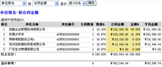 圖2 依據(jù)合同金額對(duì)客戶單位進(jìn)行降序排名