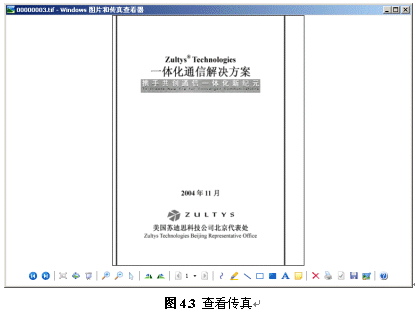 用戶可以顯示、保存、移動(dòng)、刪除、復(fù)制傳真,也可以回?fù)軅髡鎭?lái)電號(hào)碼。選擇顯示傳真時(shí),系統(tǒng)自動(dòng)調(diào)用圖片處理軟件打開(kāi)傳真(不同的操作系統(tǒng)軟件或版本所帶軟件不同,下圖僅供參考)。