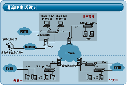 對(duì)于分支機(jī)構(gòu),港灣公司的解決方案超出了我們的預(yù)期。他們給予了兩套方案,第一種方案和我們標(biāo)書中的基本要求一樣,提供了內(nèi)部通信的單獨(dú)IP話機(jī),同時(shí)保留本地直線電話。第二種方案中則全部遷移到IP電話平臺(tái)中,依賴SoftUp201/202