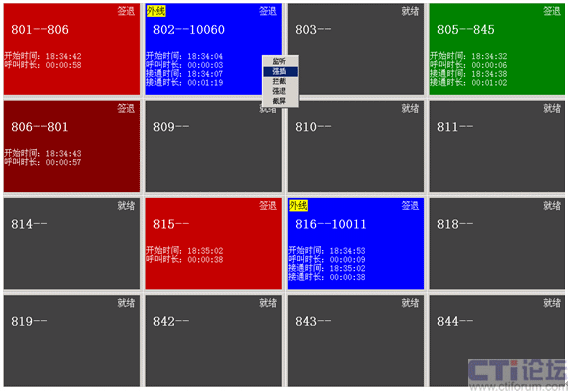 D公司的管理員通過靈活使用豐富的坐席監(jiān)控視圖,實(shí)時(shí)的掌握了坐席的工作狀態(tài),并配合相應(yīng)的監(jiān)聽、強(qiáng)插、攔截、強(qiáng)退、截屏等管理手段,解決了坐席員不認(rèn)真工作的問題。