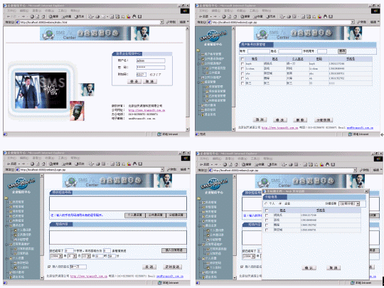 企業(yè)里的每個(gè)用戶要實(shí)現(xiàn)短信發(fā)送,僅需一臺(tái)電腦,然后利用瀏覽器就可以實(shí)現(xiàn)分組發(fā)送(如:會(huì)議通知、緊急通知)、定時(shí)群發(fā)(如:提醒短信、恭賀短信、祝福短信)、以及接收工作情況匯報(bào)短信等,系統(tǒng)提供通訊薄管理,可編輯常用短語(yǔ)。服務(wù)器端支持多個(gè)GSM設(shè)備群發(fā),滿足不同發(fā)送短信量的需要?煨┫螺d系統(tǒng)的動(dòng)畫(huà)演示,新增功能多多!。