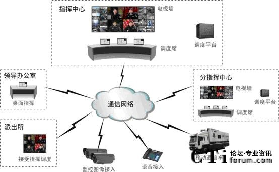 系統(tǒng)支持大型或中小型調度指揮中心部署,也支持在領導辦公室部署小型指揮點;各個前端點可通過E1專線或以太網(wǎng)接入中心平臺,也可通過衛(wèi)星、無線等方式支持移動終端的接入。