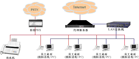。。某中小企業(yè),無分支機(jī)構(gòu),現(xiàn)時有一個由傳統(tǒng)PBX構(gòu)建的電話系統(tǒng)和一個以太局域網(wǎng),兩者相互獨(dú)立,局域網(wǎng)通過一臺代理服務(wù)器用以太網(wǎng)或ADSL方式接入Internet。企業(yè)的語音通信由電話系統(tǒng)實(shí)現(xiàn);員工的日常工作需要使用計算機(jī)以及多種局域網(wǎng)和Internet服務(wù)(如文件共享、網(wǎng)絡(luò)打印、瀏覽網(wǎng)頁、收發(fā)郵件等),這些服務(wù)通過局域網(wǎng)提供,目前,在企業(yè)的經(jīng)營管理上還沒有應(yīng)用相關(guān)的業(yè)務(wù)系統(tǒng)(如工作流、ERP、CRM等)。