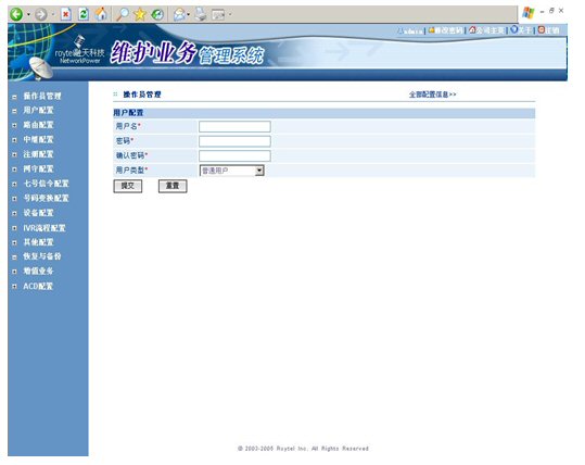 如果說(shuō)節(jié)省了幾臺(tái)服務(wù)器和CTI中間軟件的開(kāi)支對(duì)于用戶而言僅僅是一個(gè)直觀的體驗(yàn),那么RT-CCP1000的維護(hù)和管理將對(duì)用戶產(chǎn)生長(zhǎng)久的影響,在維護(hù)和管理上仍然堅(jiān)持著一體化核心理念的RT-CCP1000平臺(tái),將用戶從多個(gè)廠家的設(shè)備互聯(lián)和維護(hù)中(程控交換機(jī)/CTI服務(wù)器/IVR服務(wù)器/錄音服務(wù)器)徹底的解放出來(lái)。RT-CCP1000基于WEB方式的全中文操作維護(hù)界面始終走在業(yè)界的最前沿。