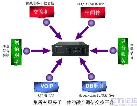 融天科技多媒體呼叫中心采用國際領先技術的融合通信一體化平臺,該平臺集傳統(tǒng)PBX、IP-PBX于一體,集CTI、IVR、ACD、APP等服務功能于一體,集錄音、傳真、會議、留言等全套的增值業(yè)務于一體,硬件平臺非常簡單,用戶只需要購買一臺硬件設備即可: