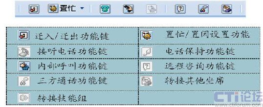 基于業(yè)務支撐平臺的JTAPI開發(fā)包所開發(fā)的Applet程序,實現座席員所需要的話務功能,可以和頁面進行交互;軟電話條如下: