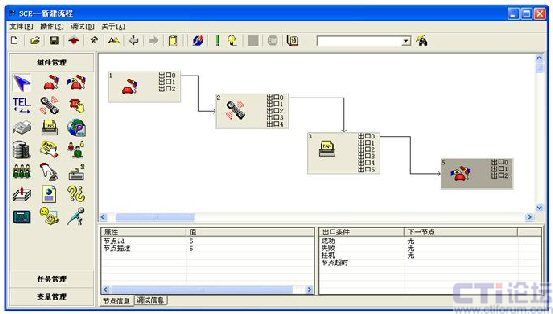 簽入、簽出、置閑、置忙、應答、掛機、保持/取回、咨詢/取消咨詢、兩路切換、轉接、三方會議、轉技能組、外呼等;豐富的業(yè)務系統(tǒng)功能包括:工單管理、知識庫、客戶管理、質檢管理、外撥管理、業(yè)務統(tǒng)計報表、公告板、郵件管理、系統(tǒng)管理、前臺業(yè)務(坐席)功能、班長功能、數據同步、全程錄音、業(yè)務處理等,這些功能不作詳細介紹。IVR流程也是采用非常先進的圖形化流程編輯器,通過簡單的拖、拉圖標方式即可實現對IVR流程的定制: