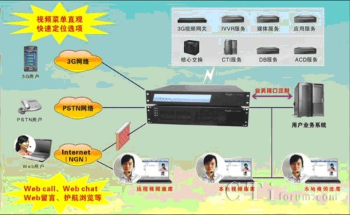 注:同時(shí)也可以讓用戶的傳統(tǒng)呼叫中心平滑升級(jí)到3G視頻視頻呼叫中心。