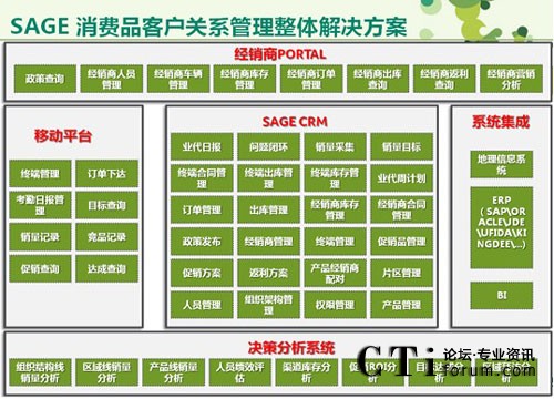 Sage CRM消費品行業(yè)解決方案提供經(jīng)銷商使用的PORTAL系統(tǒng)、移動系統(tǒng)、內(nèi)部運作系統(tǒng)及可以供我們經(jīng)營管理層使用的決策分析系統(tǒng),全面提高企業(yè)的快速反應(yīng)力及競爭力,為消費品行業(yè)企業(yè)創(chuàng)造更大效益。