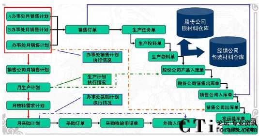 從上圖可以看出,河套酒業(yè)包括股份公司、生產(chǎn)公司、銷售公司、辦事處等獨立核算的實體或分子公司,但是實際上整個供應(yīng)鏈系統(tǒng)是完全集成在一起的。孤立的解決上述問題,只能帶來重復(fù)工作量、公司間相同業(yè)務(wù)不一致以及滯后、市場反應(yīng)不及時等問題。因此跨公司實體,實現(xiàn)銷售計劃、生產(chǎn)計劃、采購計劃三大計劃集成、物流集成是白酒類生產(chǎn)企業(yè)供應(yīng)鏈系統(tǒng)信息化的關(guān)鍵。