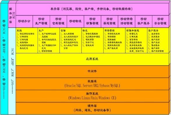 隨著移動商務(wù)時(shí)代的到來,電子商務(wù)時(shí)代的企業(yè)信息化系統(tǒng)(或者企業(yè)管理系統(tǒng)),包括SCM(供應(yīng)鏈管理)、ERP(企業(yè)資源規(guī)劃)、CRM(客戶關(guān)系管理)、OA(辦公自動化)和財(cái)務(wù)系統(tǒng)等等將逐漸向Mobile-SCM(移動供應(yīng)鏈管理)、Mobile-ERP(移動企業(yè)資源規(guī)劃)、Mobile-CRM(移動客戶關(guān)系管理)、Mobile-OA(移動辦公)等演變,并隨著應(yīng)用的逐漸普及,給企業(yè)的生產(chǎn)經(jīng)營流程帶來巨大而深刻的變化。