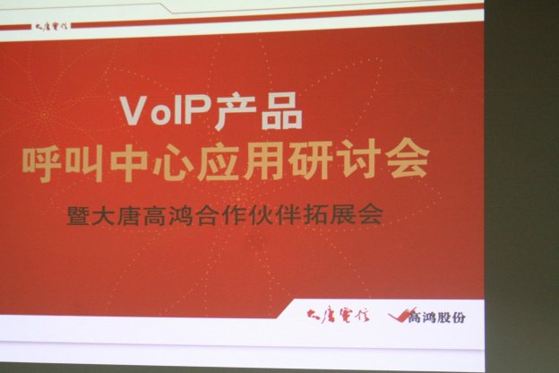 2006年9月8日,由中國VoIP業(yè)界的引領(lǐng)者大唐高鴻數(shù)據(jù)網(wǎng)絡(luò)技術(shù)股份有限公司(股票簡稱:高鴻股份;股票代碼:000851)主辦的大唐高鴻VoIP產(chǎn)品呼叫中心應(yīng)用研討會在北京大唐電信集團主樓隆重舉行,此次會議由CTI論壇協(xié)辦。這是會議是大唐高鴻攜其VoIP產(chǎn)品進軍呼叫中心領(lǐng)域的里程碑。參加會議的代表來自虛擬運營商、VoIP公司、呼叫中心公司,企業(yè)行業(yè)客戶以及知名媒體共120余人,大唐高鴻還向會議代表介紹了其VoIP產(chǎn)品與呼叫中心廠商的合作計劃,預示著大唐高鴻正式向全國展開VoIP產(chǎn)品在呼叫中心行業(yè)中的應(yīng)用的市場攻勢。