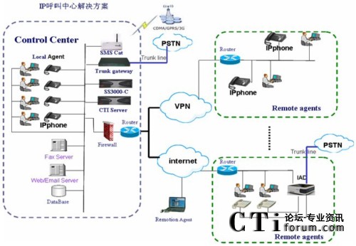 圖:SS3000-C 呼叫中心解決方案系統(tǒng)架構(gòu)組網(wǎng)圖