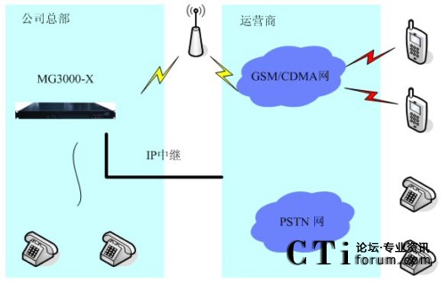 4、公司員工在公司外部時(shí),可以用手機(jī)通過(guò)撥打公司“移動(dòng)”總機(jī),再通過(guò)IP中繼,撥打目的固定電話號(hào)碼或者移動(dòng)電話號(hào)碼。即間接的把話務(wù)轉(zhuǎn)移到了IP中繼呼出上,在一定程度上節(jié)省了通話費(fèi)用。