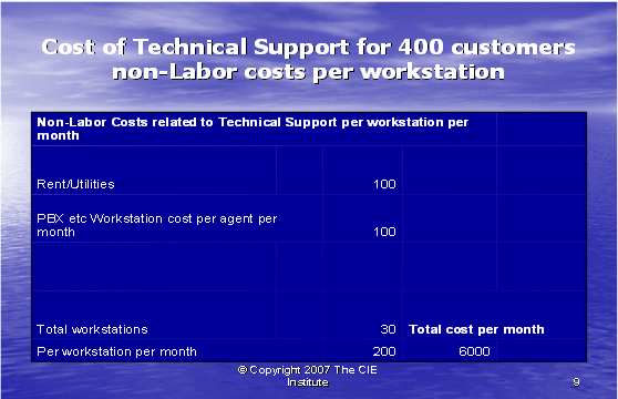 最后,我們可以如同下面圖表10所示,把所有的信息放在一起。每個客戶的技術(shù)支持的實際成本包括間接人工成本和工作場地成本,這是服務一個客戶所花費成本的正確的反映。