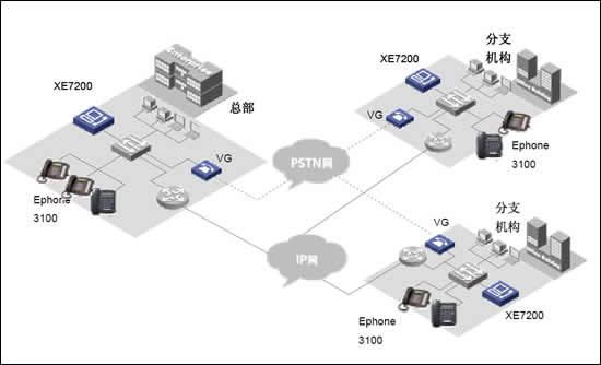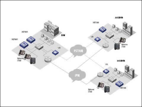 華為三康的XE7000IP語音解決方案是為企業(yè)提供融合的通信解決方案,在同一網(wǎng)絡(luò)上融合語音、數(shù)據(jù)和視頻信息,以滿足其日益增長的企業(yè)通信的要求從而解決了現(xiàn)代企業(yè)面對(duì)的傳統(tǒng)PBX語音服務(wù)和IP網(wǎng)絡(luò)數(shù)據(jù)服務(wù)分離問題。華為三康的XE7000IP語音解決方案構(gòu)建在企業(yè)現(xiàn)有IP數(shù)據(jù)網(wǎng)絡(luò)之上,以集中式管理方式提供企業(yè)全網(wǎng)范圍內(nèi)的呼叫控制以及管理,業(yè)務(wù)控制和信令分離使得用戶在管理上更加簡單透明,極大的節(jié)省了日常維護(hù)費(fèi)用和降低了維護(hù)難度。并使得客戶可以在任意地方實(shí)現(xiàn)IP語音數(shù)據(jù)接入,使得企業(yè)分布式辦公的不再因?yàn)槲锢砜臻g隔離而無法實(shí)現(xiàn)。