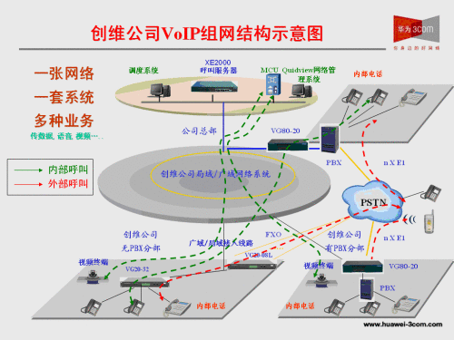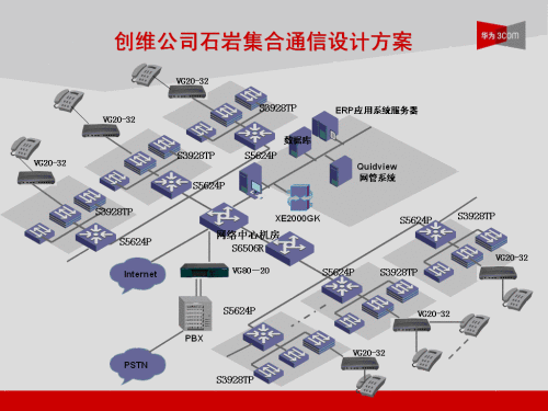 整個解決方案大量使用了華為3Com公司自主研發(fā)的XE2000、VG80-20、VG20-32、VG20-16、VG21-08等一系列VOIP系統(tǒng),整個石巖基地語音點數(shù)覆蓋1500點以上,未來發(fā)展可以擴(kuò)展到2500點。