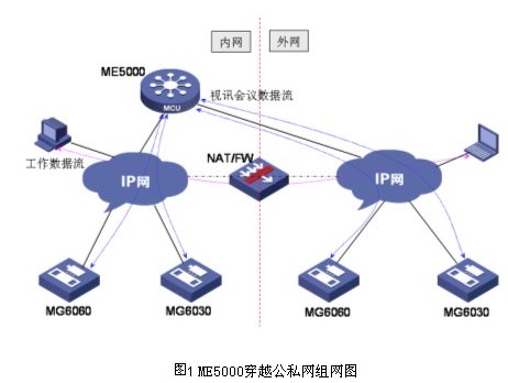 ME5000 提供4個(gè)以太網(wǎng)口,其中3個(gè)網(wǎng)口可以用來召開視訊會(huì)議,這3個(gè)網(wǎng)口可以跨越在不同的網(wǎng)段上,實(shí)現(xiàn)公、私網(wǎng)的穿越,同時(shí)也可以為用戶提供網(wǎng)絡(luò)負(fù)載均衡的功能。在存在防火墻的環(huán)境中,可以把ME5000的兩個(gè)網(wǎng)口分別布置在防火墻的兩側(cè),連接內(nèi)、外網(wǎng)的視訊終端,從而可以直接繞過防火墻進(jìn)行開會(huì),而不影響其它數(shù)據(jù)業(yè)務(wù)的安全,內(nèi)、外網(wǎng)進(jìn)出數(shù)據(jù)業(yè)務(wù)時(shí)仍然會(huì)通過防火墻,網(wǎng)絡(luò)安全保護(hù)作用不受影響。