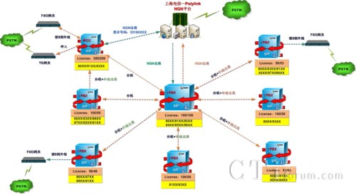 2.呼入從Polylink提供的VoIP語(yǔ)音服務(wù)或是FXO口網(wǎng)關(guān)呼入,呼出從Polylink-NGN平臺(tái)呼出。