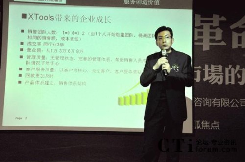 另外,濟(jì)南創(chuàng)弈工場(chǎng)總經(jīng)理趙小峰任曉峰與現(xiàn)場(chǎng)嘉賓分享了自身創(chuàng)業(yè)與成長(zhǎng)過(guò)程。創(chuàng)弈工場(chǎng)科技有限公司成立于2008年,是由山東大學(xué)創(chuàng)業(yè)團(tuán)隊(duì)發(fā)展而來(lái)的、以先進(jìn)電子商務(wù)架構(gòu)和企業(yè)CI設(shè)計(jì)專(zhuān)家為目標(biāo)的公司。趙總?cè)慰偸且晃?0后互聯(lián)網(wǎng)新銳,他表示:“公司運(yùn)用XTools具有管理思想的系統(tǒng)幫助管理這支年輕的隊(duì)伍,使其健康發(fā)展,對(duì)于創(chuàng)業(yè)者來(lái)說(shuō),銷(xiāo)售體系的管理是至關(guān)重要的,這樣我們少走了彎路!