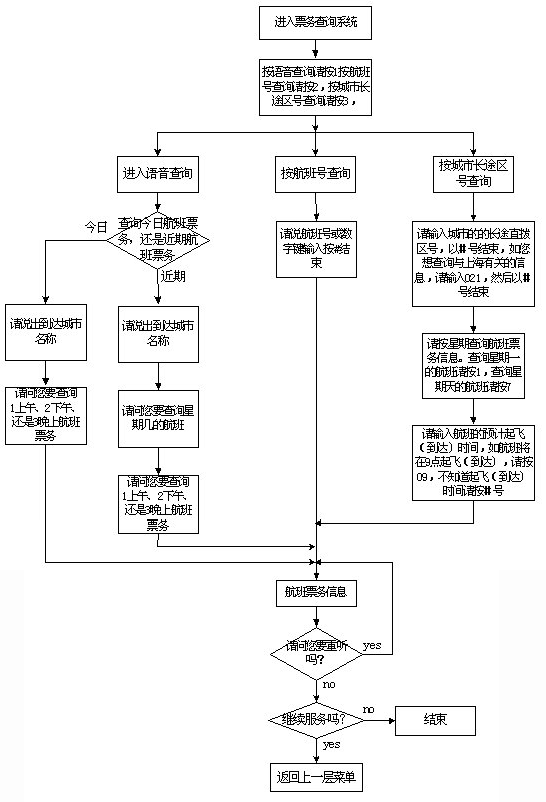 該系統(tǒng)主要采用語音技術實現(xiàn)航班信息查詢,系統(tǒng)的主業(yè)務流程如圖一至五示。