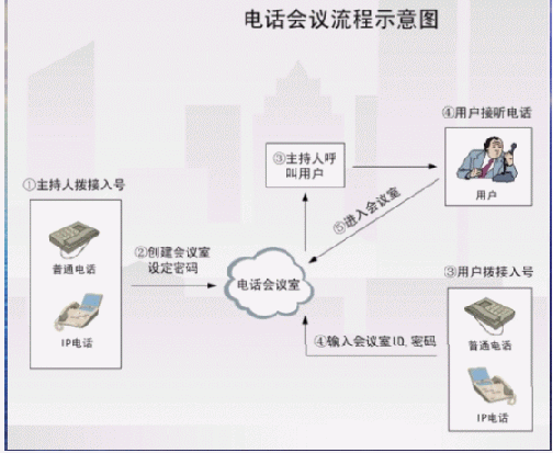 - 多方電話會議功能,最多可以實(shí)現(xiàn)16方通話。電話會議介紹(當(dāng)會議室中僅有一個(gè)人的時(shí)候,聽到的是等待音樂)。