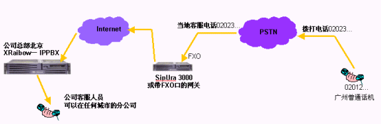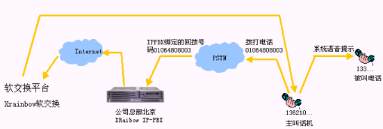 - 跨地域來電轉(zhuǎn)接,比如某個(gè)分支機(jī)構(gòu)的客戶撥叫該分支機(jī)構(gòu)電話,電話接起后,如果客戶需求沒有得到順利的答復(fù),在客戶電話保持的情況下,可以將電話轉(zhuǎn)接到在全國的任何一個(gè)IPPBX分機(jī)上。