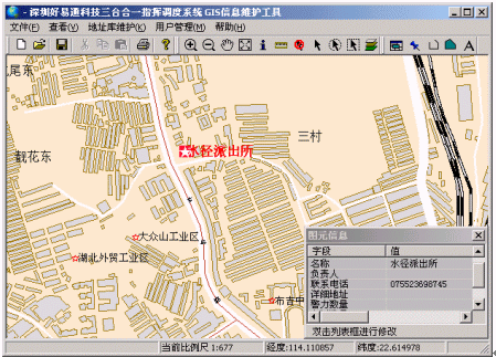 好易通三臺(tái)合一指揮調(diào)度警用地理信息子系統(tǒng)是好易通三臺(tái)合一指揮調(diào)度系統(tǒng)的一個(gè)重要組成部分,主要參考《警用地理信息系統(tǒng)建設(shè)規(guī)范》以及公安部《縣、市級(jí)公安機(jī)關(guān)"三臺(tái)合一"接處警系統(tǒng)技術(shù)規(guī)范》設(shè)計(jì),基于MapInfo平臺(tái)開(kāi)發(fā),接處警人員可運(yùn)用該子系統(tǒng)對(duì)案發(fā)地點(diǎn)進(jìn)行多中定位(模糊定位、輔助定位),多種查詢及多種調(diào)度。