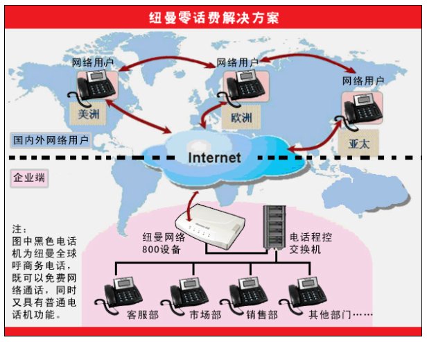 電話通訊技術(shù)發(fā)明以來最震撼的革命——零話費(fèi)解決方案由紐曼開始,該方案由紐曼全球呼智能商務(wù)電話和網(wǎng)絡(luò)800組成,操作簡(jiǎn)單、音質(zhì)清晰,通話雙方用普通電話機(jī)實(shí)現(xiàn)免費(fèi)通話。