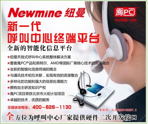 CTI論壇(ctiforum)4月28日消息(記者 張潔): 2011年4月12至13日,在五洲大酒店中國國際會議中心2011中國呼叫中心及企業(yè)通信大會(簡稱CTI呼叫中心大會)盛大召開,本屆展會展位近百個,規(guī)模2000余平方米,吸引了國內(nèi)外行業(yè)觀眾數(shù)千人次參與,并將成為2011年度國內(nèi)及亞太地區(qū)規(guī)模最大的呼叫中心和企業(yè)通信展會。紐曼騰飛公司在本屆展會上推出包括智能商務電話,錄音系統(tǒng),鳳PC(電話電腦一體機)等多種行業(yè)領先產(chǎn)品,吸引了大批行業(yè)內(nèi)人員及普通消費者的關注。尤其鳳PC的推出更是本屆展會的一大亮點。