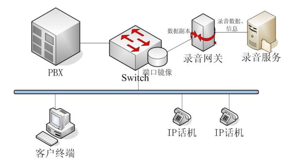 NETLOG VOIP語音記錄系統(tǒng)可以方便靈活的支持任何網(wǎng)絡(luò)結(jié)構(gòu),并可以根據(jù)用戶要求指定工作的方式。由于采用端口鏡像技術(shù),如果要直接采用Switch連接,則要求Switch必須支持端口鏡像功能;如果Switch不支持端口鏡像,則將所有要錄音的話機(jī)與錄音網(wǎng)關(guān)連接在同一個集線器上,錄音網(wǎng)關(guān)支持這種工作方式。