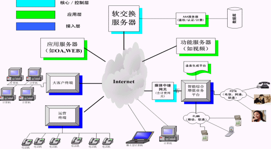 在此基礎(chǔ)下電信、網(wǎng)通、移動(dòng)、聯(lián)通、鐵通、衛(wèi)通等電信運(yùn)營(yíng)商可用來做下一代網(wǎng)絡(luò)(NGN)業(yè)務(wù)及運(yùn)營(yíng),虛擬電信運(yùn)營(yíng)商和增值業(yè)務(wù)服務(wù)商、新興電信運(yùn)營(yíng)商開展各種電信運(yùn)營(yíng)、增值業(yè)務(wù)和搶占語(yǔ)音市場(chǎng)的利器,政府和企業(yè)辦公的即時(shí)通信平臺(tái)和呼叫中心平臺(tái)、信息服務(wù)、管理平臺(tái)。
