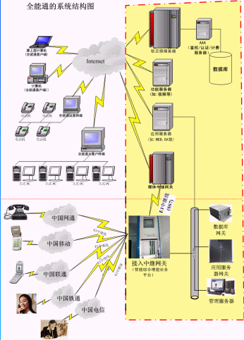 在和創(chuàng)世紀(jì)全能通的基礎(chǔ)下電信、網(wǎng)通、移動(dòng)、聯(lián)通、鐵通、衛(wèi)通等電信運(yùn)營(yíng)商可用來做下一代網(wǎng)絡(luò)(NGN)業(yè)務(wù)及運(yùn)營(yíng),虛擬電信運(yùn)營(yíng)商和增值業(yè)務(wù)服務(wù)商、新興電信運(yùn)營(yíng)商開展各種電信運(yùn)營(yíng)、增值業(yè)務(wù)和搶占語(yǔ)音市場(chǎng)的利器。(具體有關(guān)‘如何用全能通平臺(tái)切入語(yǔ)音市場(chǎng)’,請(qǐng)來來電咨詢)