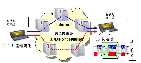 由于是利用多路徑路由發(fā)送分割的數(shù)據(jù),1條路徑被竊聽(tīng)只會(huì)有部分分割數(shù)據(jù)被竊聽(tīng)。不過(guò),如果發(fā)送分割數(shù)據(jù)的全部路徑都被竊聽(tīng),分割數(shù)據(jù)也可能全部流出。為此,此次的秘密通信系統(tǒng)設(shè)想采用基于覆蓋路由器的網(wǎng)絡(luò)(覆蓋網(wǎng)絡(luò)),將全部數(shù)據(jù)被竊聽(tīng)的可能性減小到了接近0。這是因?yàn)楦采w路由器的通信路徑能夠進(jìn)行實(shí)時(shí)切換。此次的保密通話系統(tǒng)將在覆蓋網(wǎng)絡(luò)達(dá)到實(shí)用化水平時(shí)投產(chǎn)實(shí)用。計(jì)劃在3~4年內(nèi)實(shí)現(xiàn)。