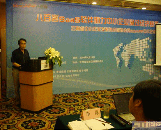 CTI論壇(ctiforum)05月07日消息: 4月24日下午,由云南省中小企業(yè)發(fā)展協(xié)會(huì)主辦、八百客(北京)軟件有限公司協(xié)辦的“八百客SaaS軟件助力中小企業(yè)度過經(jīng)濟(jì)寒冬——云南省中小企業(yè)發(fā)展協(xié)會(huì)贈(zèng)送會(huì)員800APP中小企業(yè)版活動(dòng)”在昆明邦克飯店隆重舉行。云南省中小企業(yè)發(fā)展協(xié)會(huì)秘書長華松、八百客首席應(yīng)用專家高少義與來自云南省近100家的中小企業(yè)代表,共同探討了如何通過信息化建設(shè)方式來幫助中小企業(yè)獲得商業(yè)機(jī)會(huì),把握商機(jī),提高企業(yè)經(jīng)營業(yè)績。