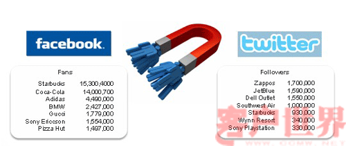 這就是今天的世界,社交媒體的發(fā)展速度和對我們生活的影響,已經(jīng)遠遠超出我們的想象,根據(jù)Cone Business in Social Media, 2009的統(tǒng)計,在美國已有93%的消費者認為企業(yè)在社交媒體上應(yīng)該擁有代表其企業(yè)的用戶,而60%的消費者已經(jīng)開始在社交媒體上與企業(yè)進行交互。根據(jù)Nielsen, Global Faces & Networked Places, 2009的統(tǒng)計,在美國超過1/2的人,每天花在社交媒體上時間,已經(jīng)超過花在收發(fā)郵件的時間,而在Facebook注冊的新用戶,增長最快的是35歲以上的人群,而不再是我們過去想象的只有年輕人,下一代才愿意在Facebook這樣的社交媒體上進行交流。如下圖說示,根據(jù)2010年10月統(tǒng)計的結(jié)果,在Facebook上Starbucks已有超過1500萬的粉絲,而Coca-Cola有超過1400萬的粉絲,這意味著無論是Starbucks還是Coca-Cola,他們在Facebook上的任何舉動,都可以讓超過1400萬人瞬間知道,并可以對企業(yè)的舉動做評價或轉(zhuǎn)發(fā)。