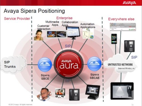 收購Sipera,Avaya獲得了適用于會話啟動協(xié)議(SIP)中繼的企業(yè)級會話邊界控制技術(shù),從而增強Avaya統(tǒng)一通信產(chǎn)品線的實力,并為客戶和渠道合作伙伴提供更大的靈活性,幫助他們實現(xiàn)各種安全功能進而創(chuàng)造商業(yè)價值。Sipera開放的、基于標準的解決方案適用于Avaya和非Avaya網(wǎng)絡(luò)。Sipera解決方案與Avaya Aura整合后,將能為客戶提供安全的VoIP、SIP中繼、視頻會議、基于云的通信、即時通信以及協(xié)作工具,使客戶能隨時隨地為使用企業(yè)級或消費類設(shè)備的員工提供服務(wù)。