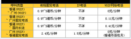 若香港與廣州兩地的終端計算機都同時安裝有VOIP的適配器,只需要通過Internet則可以實現(xiàn)免費通話,而通過傳統(tǒng)的固定電話通話則每分鐘需要耗費0.97~3的港幣;而香港通過VOIP播打廣州本地的固定電話,則需要廣州本地的VOIP計算機再飛線到所需播打的號碼上,簡單地說就是通過廣州本地的VOIP適配器利用廣州本地的固話線路播打香港所需接通的廣州號碼,從而實現(xiàn)長途電話本地化,費用僅僅是廣州本地固話所需的話費每分鐘0.11元,而通過傳統(tǒng)的固定電話通話則每分鐘需要耗費0.97~3的港幣;而香港通過VOIP播打國內(nèi)的長途電話,其原理跟播打廣州本地普通電話完全一致,簡單地說就是通過廣州本地的VOIP適配器利用廣州本地的固話線路播打香港所需接通的國內(nèi)長途號碼,費用僅僅是廣州本地固話播打國內(nèi)長途所需的話費每分鐘0.41元,而通過傳統(tǒng)的固定電話通話則每分鐘需要耗費0.97~3的港幣;而相反過來廣州本地通過VOIP播打香港電話原理也一樣,就是通過香港本地的VOIP適配器利用香港本地的固話線路播打廣州所需接通的香港電話,費用方面,傳統(tǒng)的兩地固定電話都需要收取每分鐘2.4元的費用,而通過IP電話卡也需要1.5元/分鐘的費用,而通過VOIP網(wǎng)絡(luò)電話的方式則可以實現(xiàn)免費通話,主要是由于香港本地的市話是包月的形式任打。