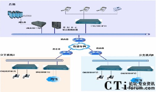 通常情況下座席必須安裝在呼叫中心平臺附近500米之內(nèi)的地方,在很多情況下,分布式的呼叫中心座席分布在各個城市。因此需要為呼叫中心平臺提供遠程的呼叫中心座席人員。本方案主要描述的是模擬語音網(wǎng)關(guān)在呼叫中心的應(yīng)用。