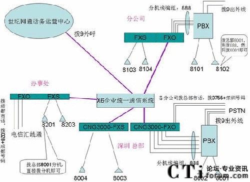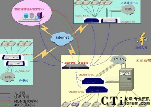 總部現(xiàn)在使用的為傳統(tǒng)PBX設(shè)備,配置為50路外線和200內(nèi)線,分機為8前綴4位的分機號碼,如8001分機。32個的辦事處使用電信匯線通或直接的PSTN線路,2個的區(qū)域營銷中心使用匯線通或直接的PSTN線路,2個分公司使用的小型PBX。總部目前申請了4條2M的ADSL線路做為一個集合,沒有固定的IP地址,各個分公司也多使用ADSL上網(wǎng)或電信的小區(qū)寬帶上網(wǎng)。