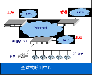 美國(guó)訊時(shí)捷™科技公司的“訊時(shí)捷™™ IPX”系統(tǒng)平臺(tái),可以作為分布式的IP呼叫中心,并可利用各地的網(wǎng)關(guān),提供低費(fèi)用的IP